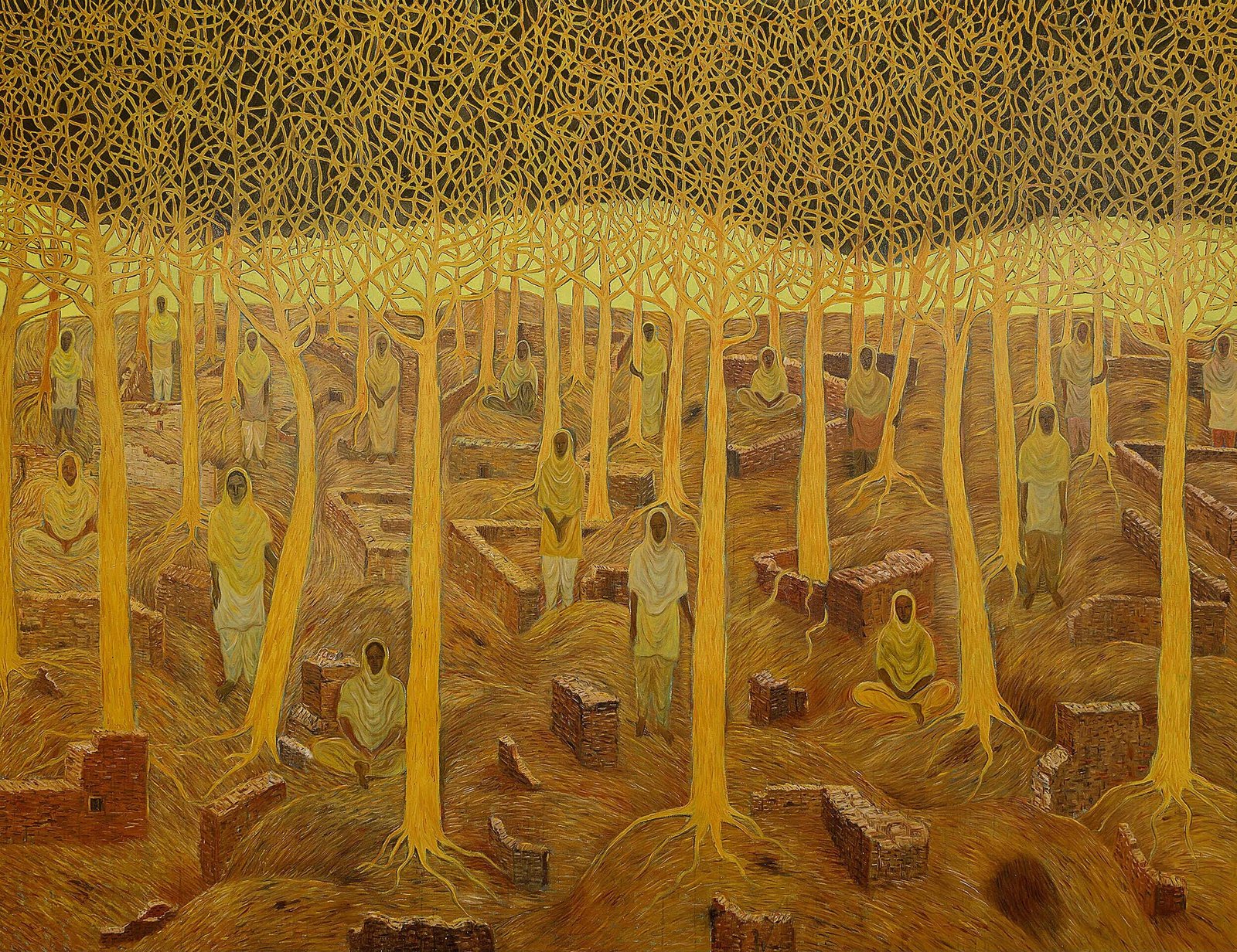 Born in 1969 in Orissa, Alok Bal attained his Bachelor of Fine Arts and Post Graduate Diploma in Painting from the Faculty of Fine Arts, M.S. University Baroda. Bal’s practice examines human existence in urban spaces, both this fascination and disillusionment with life in a metropolis. His works address ecological and social injustices, while simultaneously celebrating moments of community resilience.
