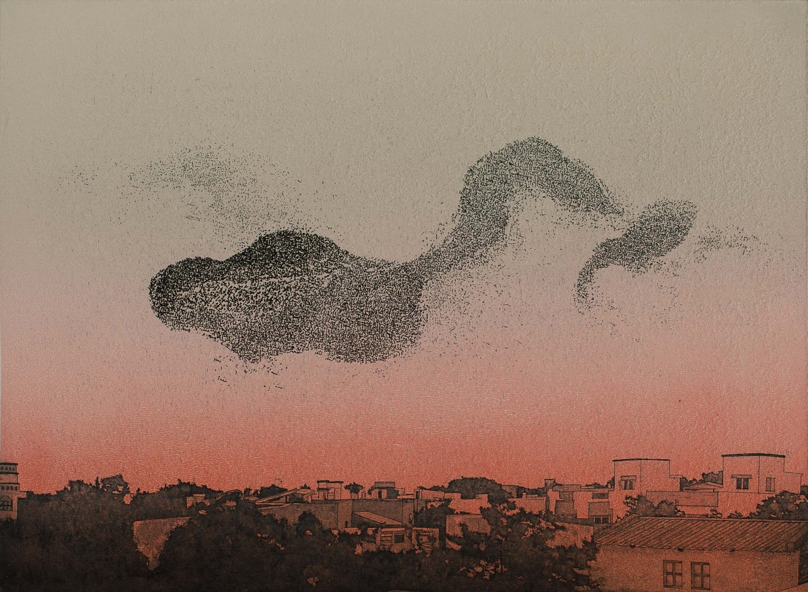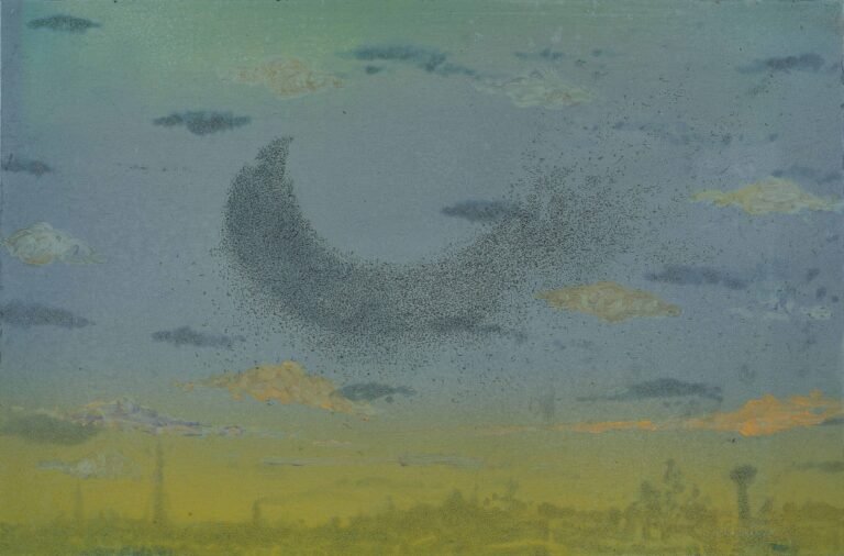 Kadiwala’s practice is deeply rooted in memory, sound and place, drawing from the rhythms of his childhood in Vaghrol and the spiritual atmosphere of Islamic devotional traditions. The Azan, Urdu and Arabic texts, and architectural details from Bohra havelis in Sidhpur serve as recurring sources of reflection. His work weaves together spirituality, abstraction and natural phenomena—birds, shifting skies, and fleeting light—where Arabic script becomes an expressive, atmospheric form rather than a literal one. Through layered surfaces and sensitive materiality, he explores the intersections of identity, emotion, and the sacred within everyday experience.