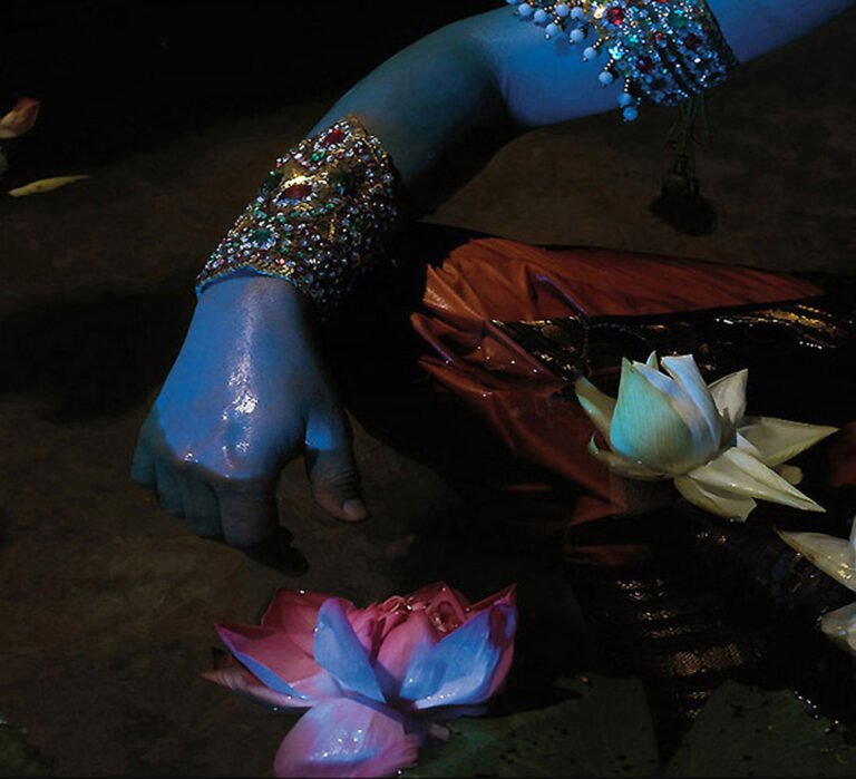 In her later solo exhibition, The Visitor, Muthiah reimagined Vishnu in what became her most ambitious project to date, both conceptually and in scope. Unlike her earlier work, which was shot in controlled environments, this series involved elaborate outdoor shoots with a large crew, drawing comparisons to the cinematic productions of celebrated photographer Gregory Crewdson.