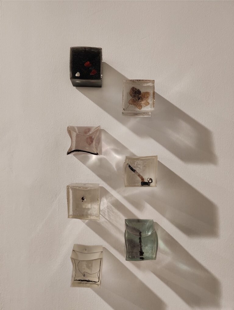 Ratna Gupta’s artistic practice emanates from an inward focus that radiates outward. Documenting her daily rituals, collecting artifacts during her strolls, and amassing remnants from both her home and studio are integral components of her ongoing process of capturing the contemporary moment. Central to her work is a keen fascination with the materiality of objects and a proclivity for repetitive labor. These elements converge, enabling Ratna to explore her preoccupation with the relentless march of time, the intricacies of memory, and the preservation of ephemeral fragments. As her artistic journey evolves, it remains steadfastly rooted in contemplations of consumption, disposal habits, and the infusion of disruption and transformation into these everyday cycles.