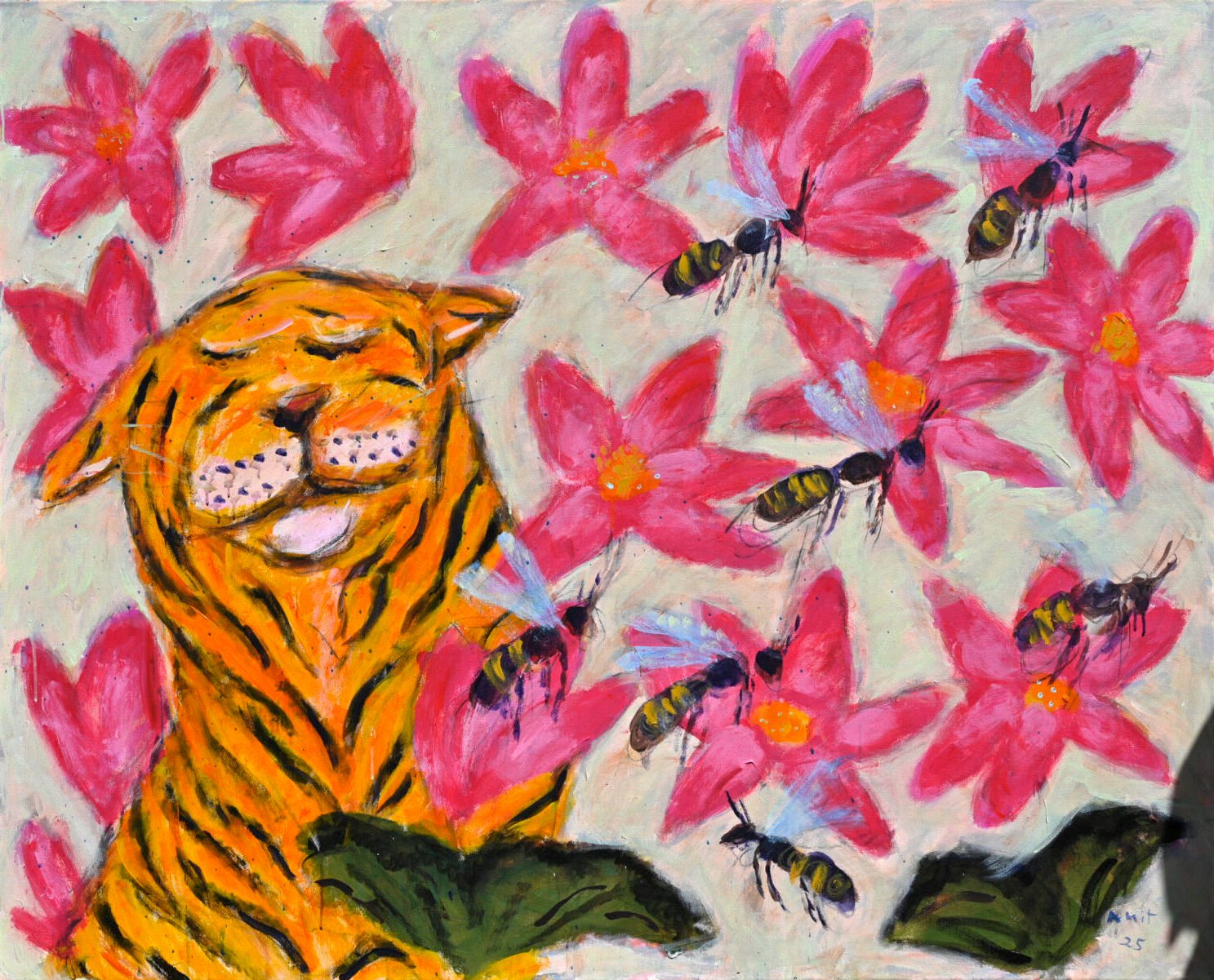 Elephants, langurs, peacocks and unexpected figures inhabit scenes marked by wit, movement and surprise. Refusing solemnity, Ambalal treats painting as joyful observation, inviting viewers into a world that feels animated, interconnected and alive.