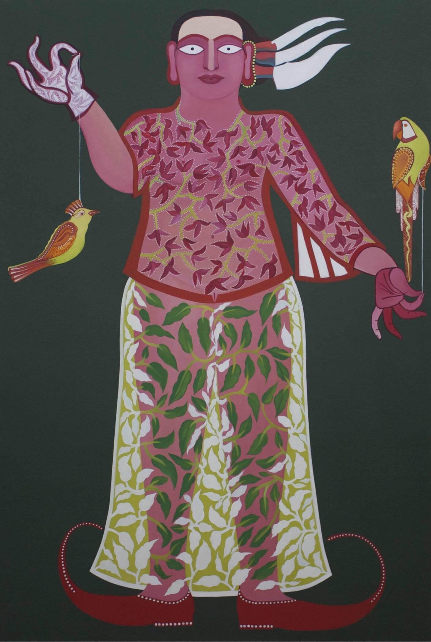 Sujith SN | Dialogue | 2024 | Tempera on paper | 79.5 x 41 InchesSujith SN